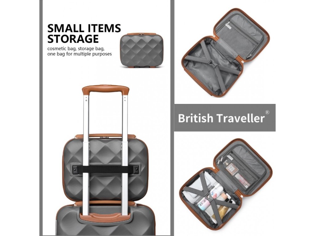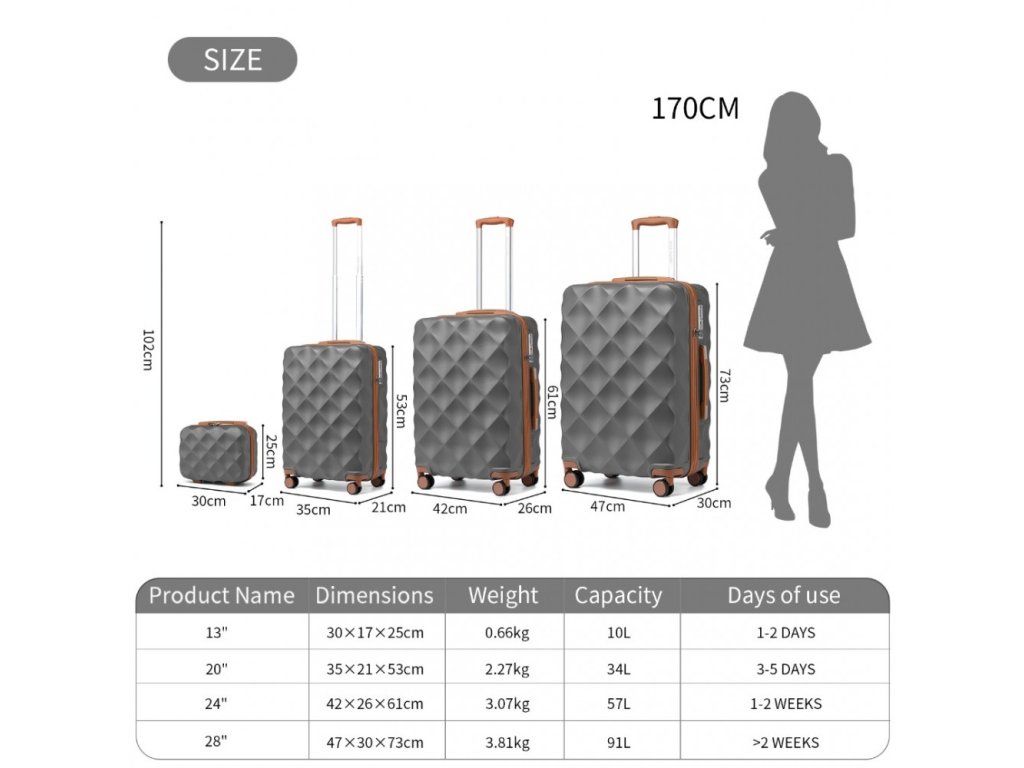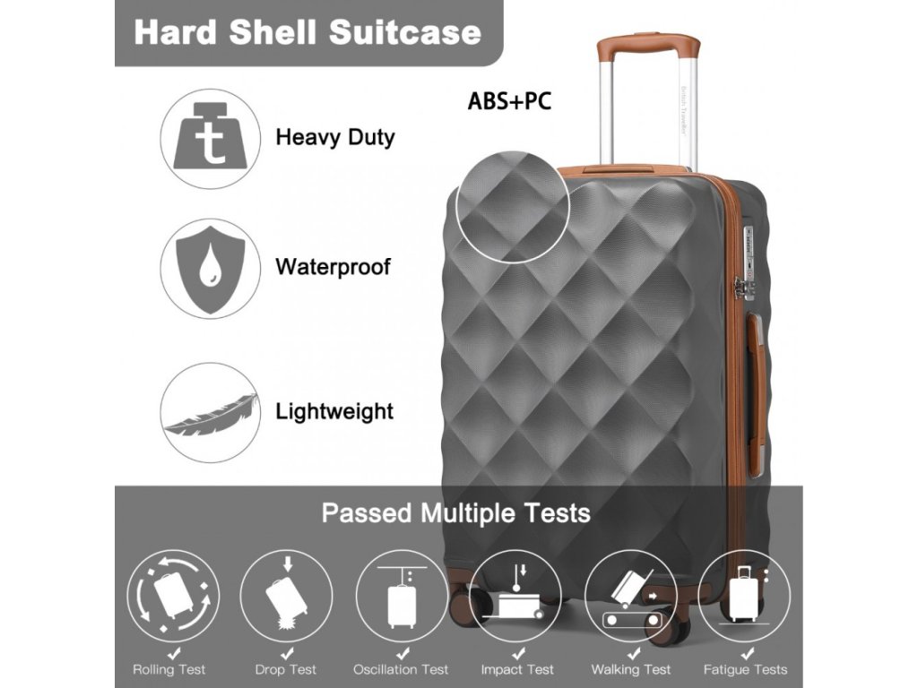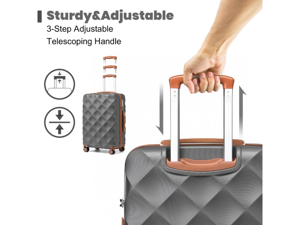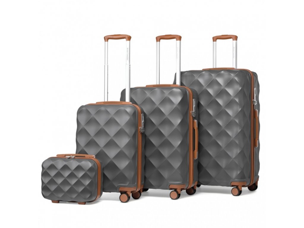 - Exteriér této elegantní 4dílné sady zavazadel s výrazným designem ve tvaru diamantu vyzařuje nejen styl, ale také nabízí ochranu proti poškrábání, díky čemuž bude váš společník na cestách vypadat jako nový po delší dobu.