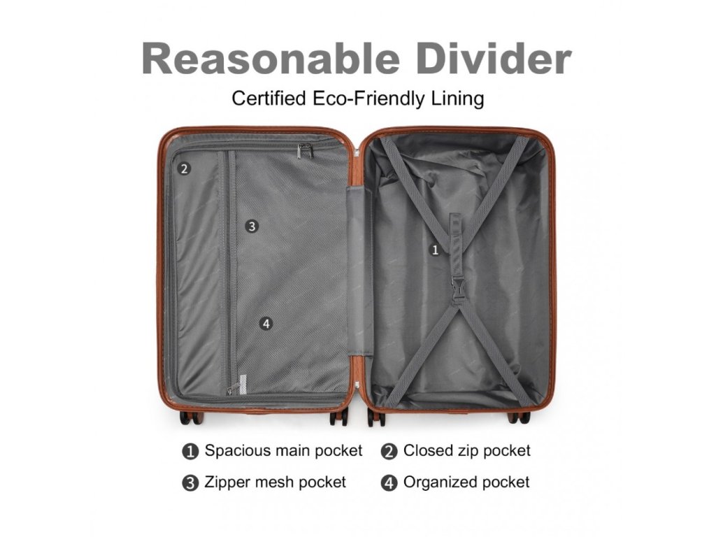 - Pro větší bezpečnost je zavazadlo vybaveno vestavěným kombinačním zámkem se třemi ciferníky schválenými TSA, zatímco tichá, 360stupňová TPE kola nabízejí tichý skluz.