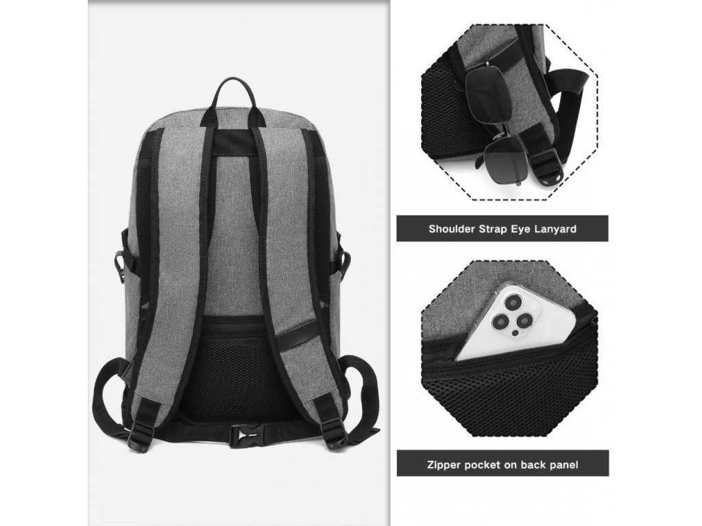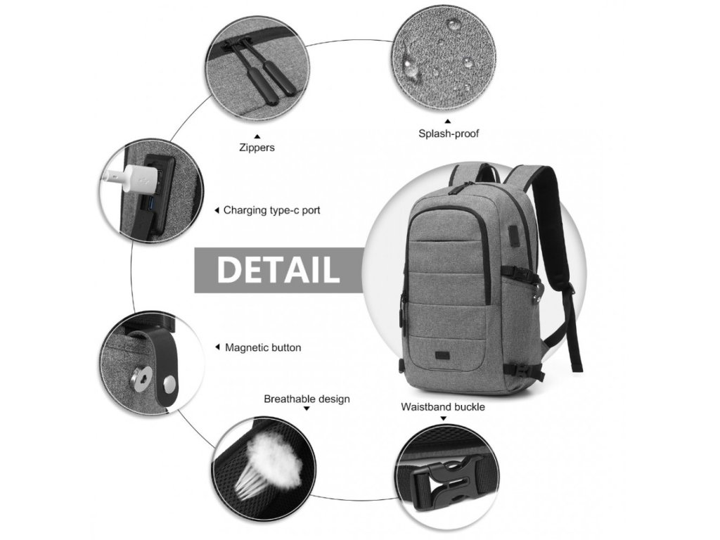 Kono voděodolný batoh s USB portem - šedý - 21 L