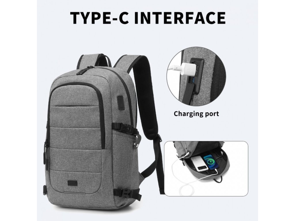 - Na pravé straně batohu, se pod ochrannými kryty ukrývá port USB a TYPE-C, což zajišťuje, že vaše zařízení zůstanou nabitá na i cestách. (Powerbanka není součástí batohu)