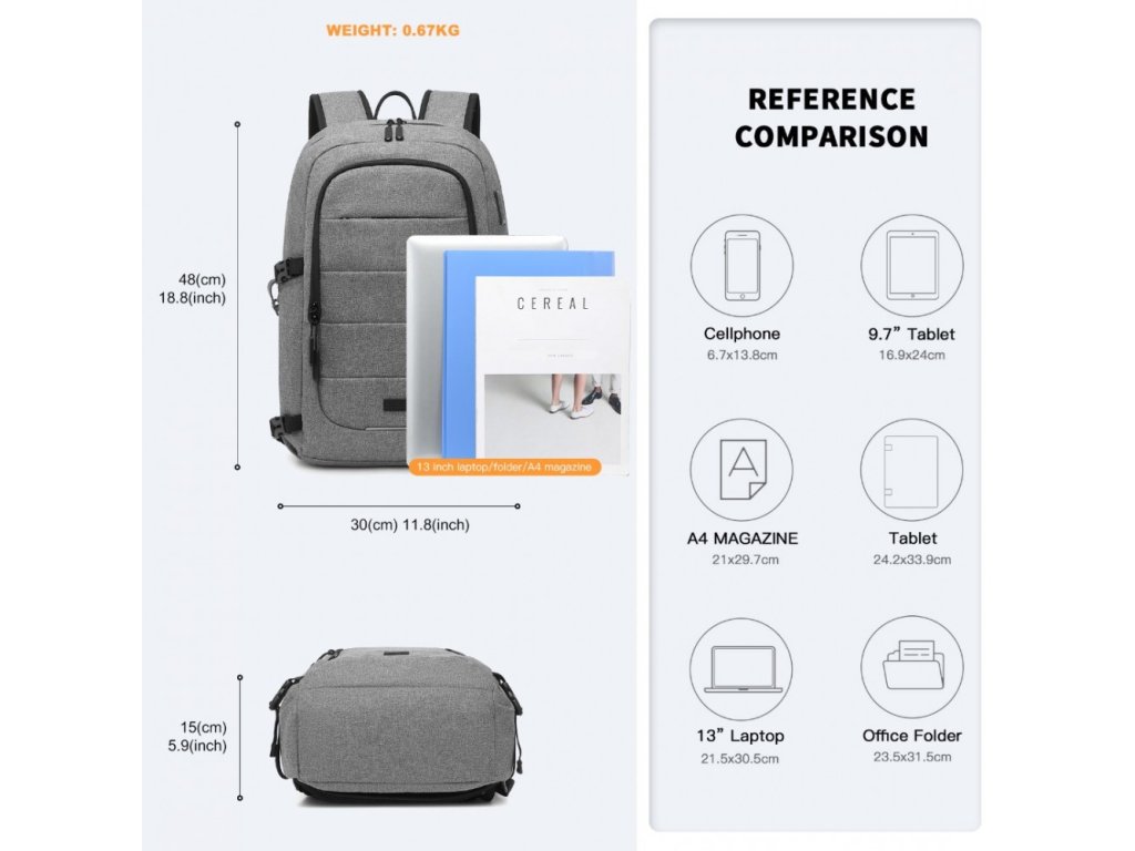Díky svému promyšlenému designu a všestranným funkcím je tento batoh KONO ideálním batohem pro moderního cestovatele. Batoh je vyroben z voděodolného materiálu čímž zaručuje bezpečné uložení vašich věcí v každé situaci. V šedém provedení.