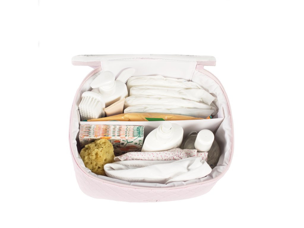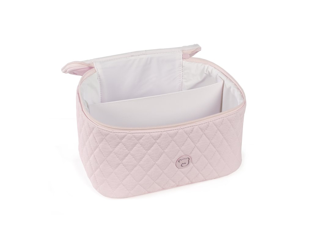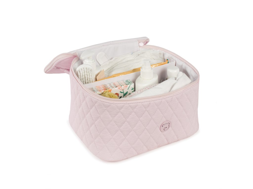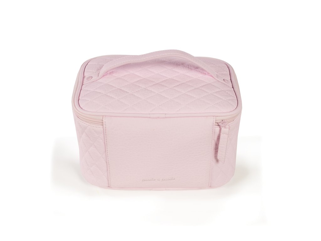 Luxusní cestovní toaletní taška vyrobena ze 100% ekokůže španělské značky Pasito a Pasito z kolekce María, v růžovém provedení. Taštička se výborně hodí jako toaletní taška do porodnice i na všechny toaletní potřeby pro vaše děťátko do přebalovací tašky.