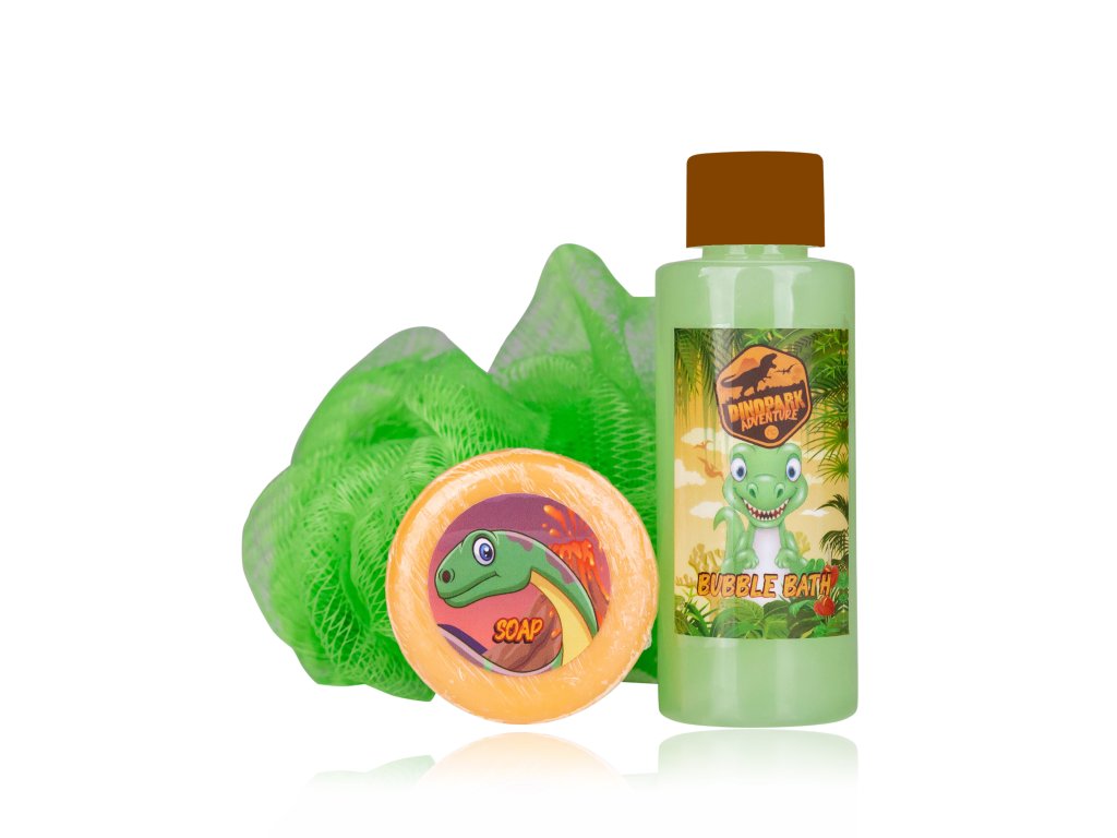 Objevte kouzlo koupelového setu DINOPARK ADVENTURE v plechové dóze a užijte si osvěžující zážitek z koupele s vůní jablka. Ideální dárek pro děti i dospělé, kteří mají rádi originální a praktické koupelové produkty.