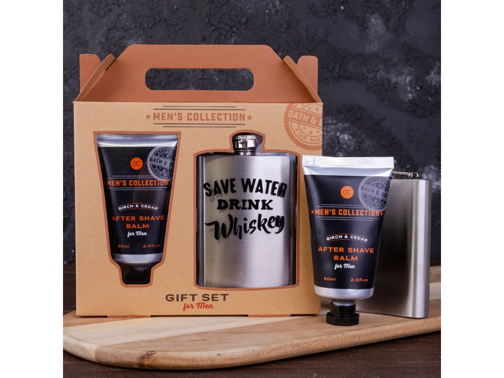 Obsah balení: 60 ml balzám po holení s vůní břízy a cedru a placatka z nerezové oceli o objemu 120 ml. Vše je zabaleno v luxusním dárkovém balení o rozměrech 18 x 16,5 x 4,5 cm.
