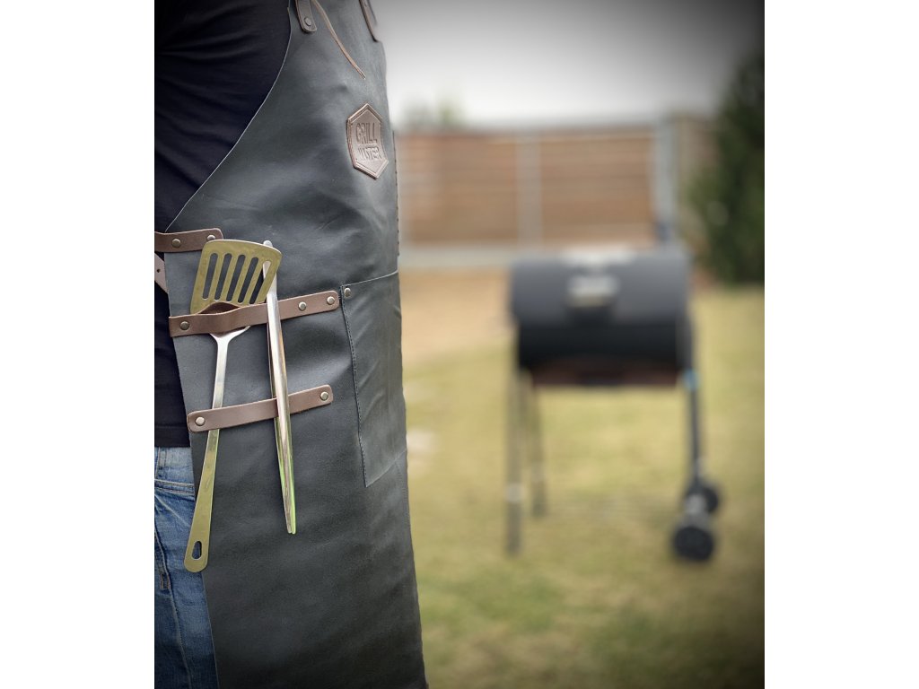 Unikátní zástěra z hovězí kůže pro opravdové milovníky grilování v černé barvě.