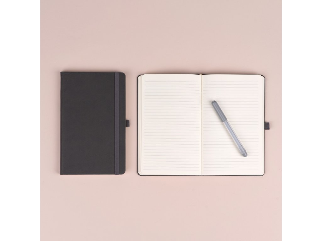 Elegantní, praktický a odolný. Šedý linkovaný notes, který vám pomůže zaznamenat každý nápad s maximální přehledností. 🖤📓✨
