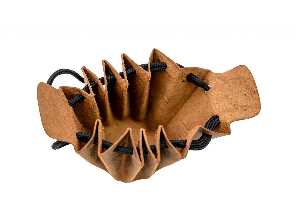 Luxusní kožený měšec vyrobený z kvalitní a pevné pravé hnědé kůže s vyraženým znakem HL přímo do kůže.