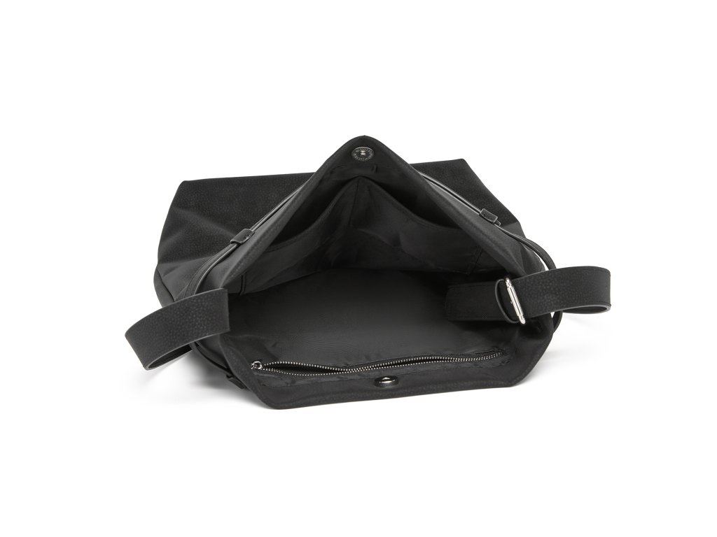 Vnější část kabelky je vyrobena z vysoce kvalitní PU kůže, která působí luxusně a zároveň se snadno čistí. Vnitřní podšívka z odolného polyesteru chrání vaše věci a zajišťuje dlouhou životnost. Stříbrné kovové prvky elegantně kontrastují s černým povrchem a dodávají modelu sofistikovaný nádech. Pro snadnou údržbu stačí otřít vlhkým hadříkem.