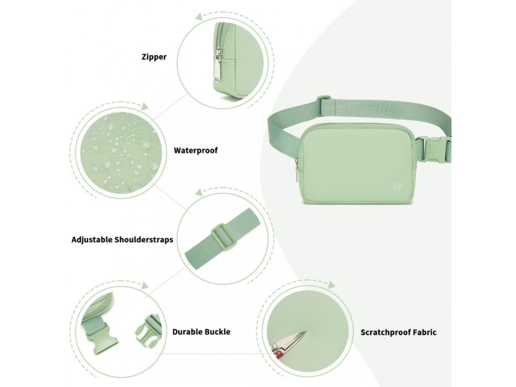 Zelená ledvinka Miss Lulu spojuje minimalistický design s praktickými funkcemi. Siluetě dominuje jemné logo „M“ na přední straně, které dodává tašce nenápadný podpis značky. Ideální pro ženy, které chtějí pohodlně a stylově zvládnout den bez zbytečné zátěže. 🌿👜