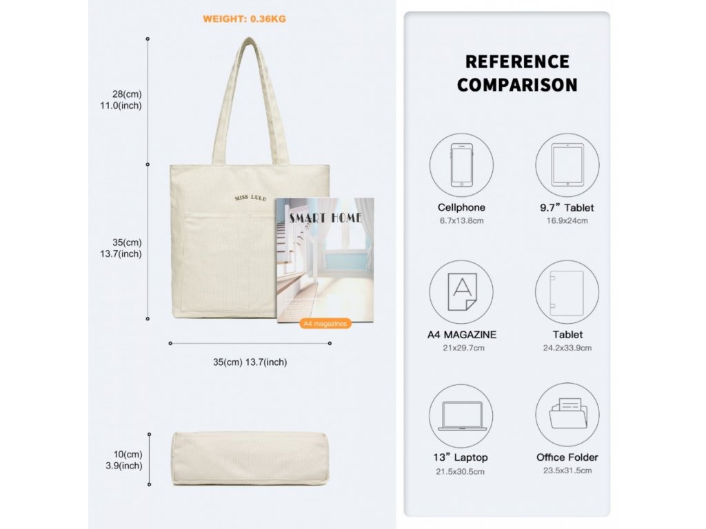 - Tato velká plátěná taška je všestranná, takže je ideální pro řadu použití, jako je nákupní taška, dárková taška, taška do tělocvičny, taška pro chůvu, plážová taška a dokonce taška na notebook.