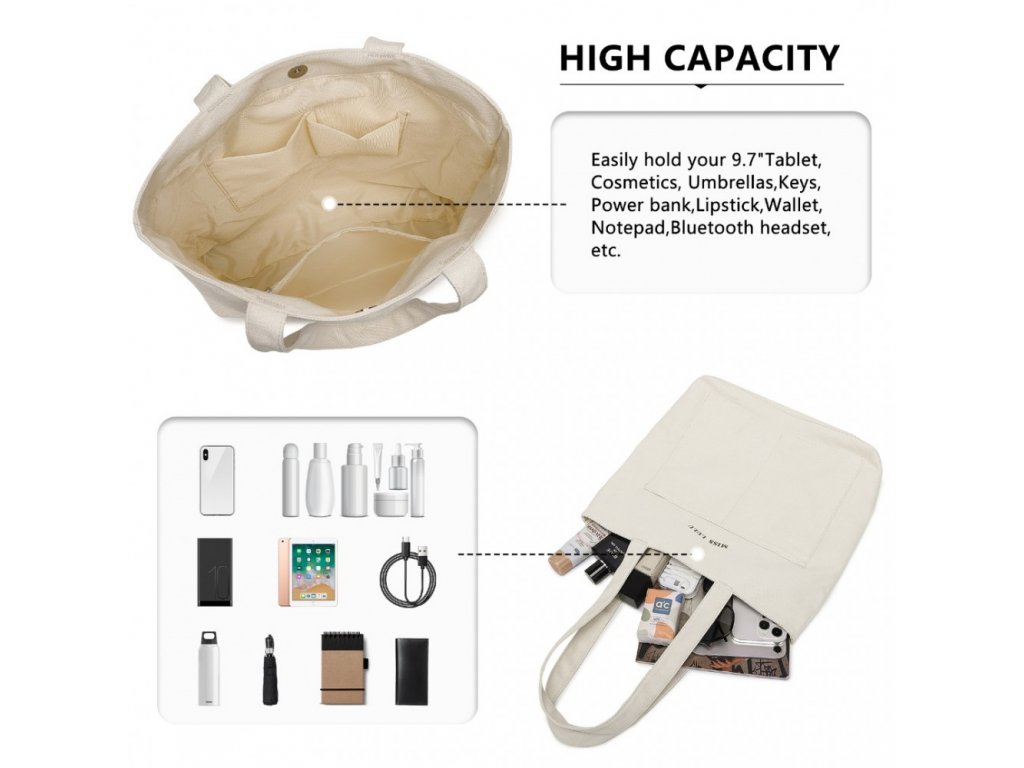 Miss Lulu univerzální plátěná taška na rameno vhodná pro každodenní nošení. Taška je prostorná a praktická takže se do ní vejdou všechny vaše nezbytnosti. V béžovém provedení.