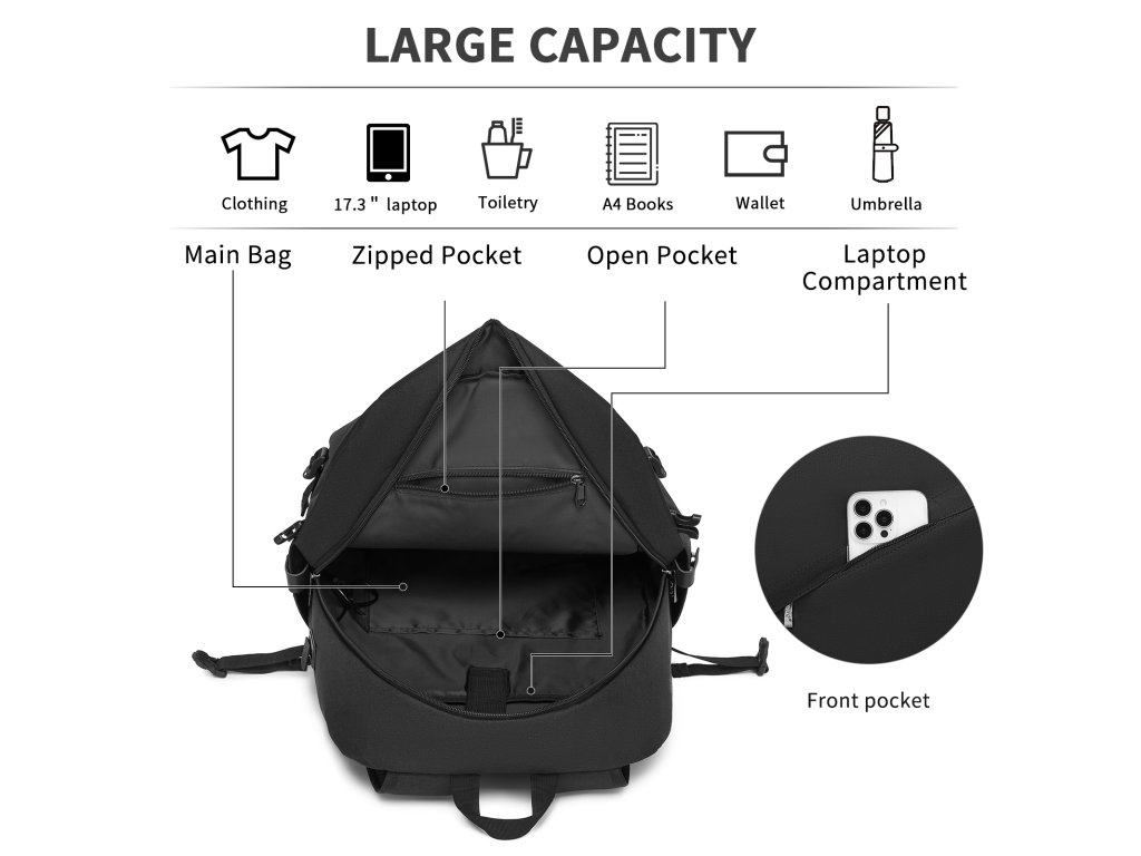 Moderní batoh na notebook 17,3" Kono 40 L - černý