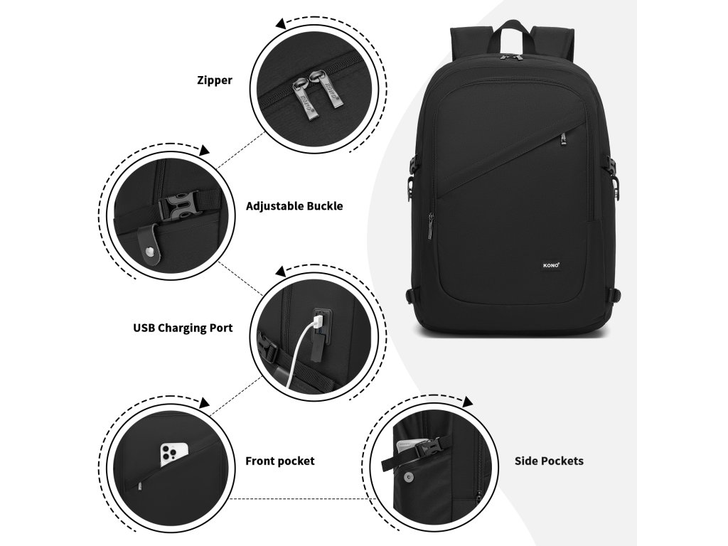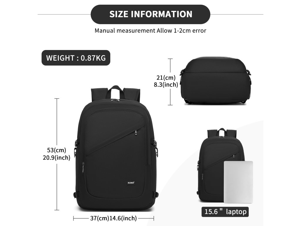 Moderní design doplňuje decentní logo Kono, které podtrhuje minimalistický městský styl. Tento batoh je skvělou volbou pro školu, práci, byznys cesty i víkendové výlety.