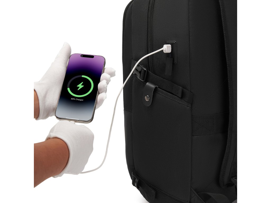 - Skrytý USB a Type-C port pro pohodlné nabíjení zařízení na cestách