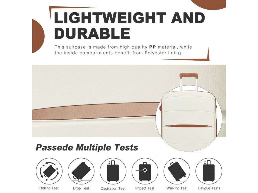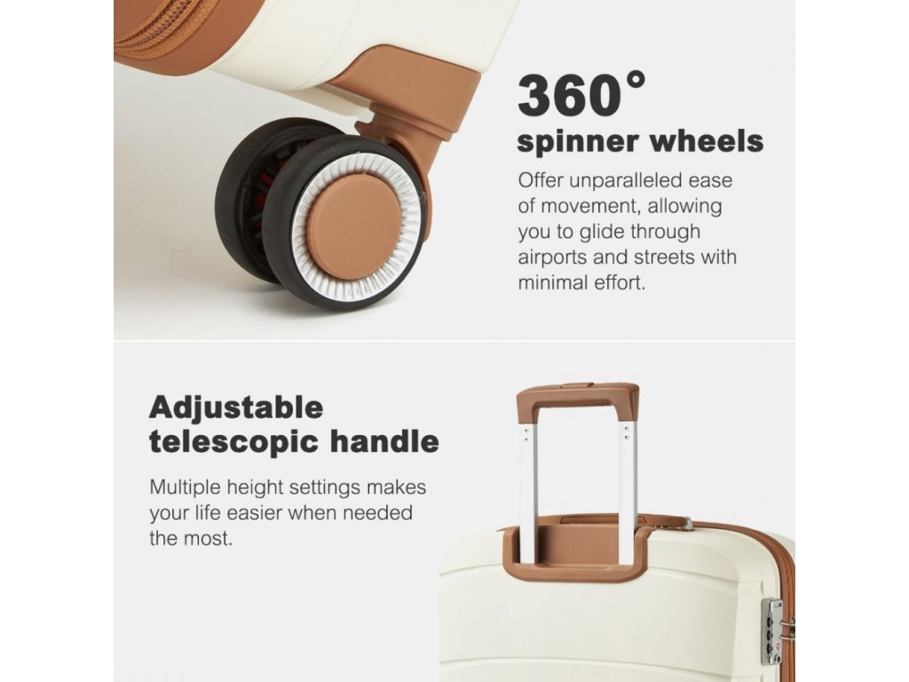 Díky odolnému polypropylenu a nadčasové béžovo-hnědé barevné kombinaci je kufr Kono skvělým společníkem pro každého cestovatele. Zajistí bezpečí vašich věcí, snadnou manipulaci a elegantní vzhled na každé cestě. ✈️💼