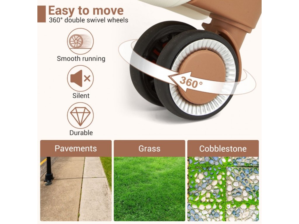 - Čtyři tichá dvojitá otočná kolečka z TPE zajišťují hladký pohyb v jakémkoliv směru.