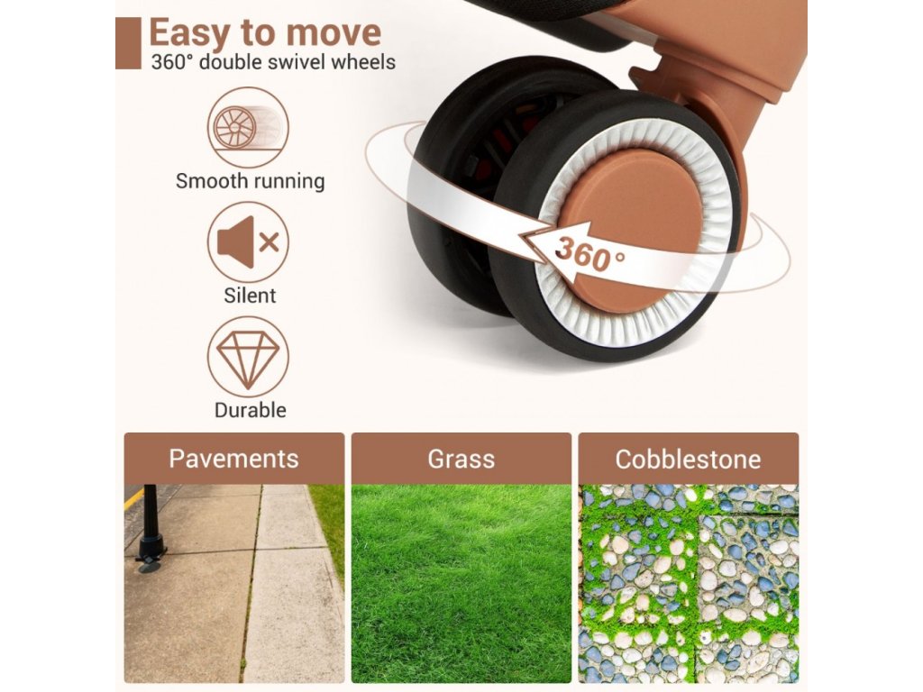 - Čtyři tichá dvojitá otočná kolečka z TPE pro plynulý a stabilní pohyb v jakémkoliv směru.