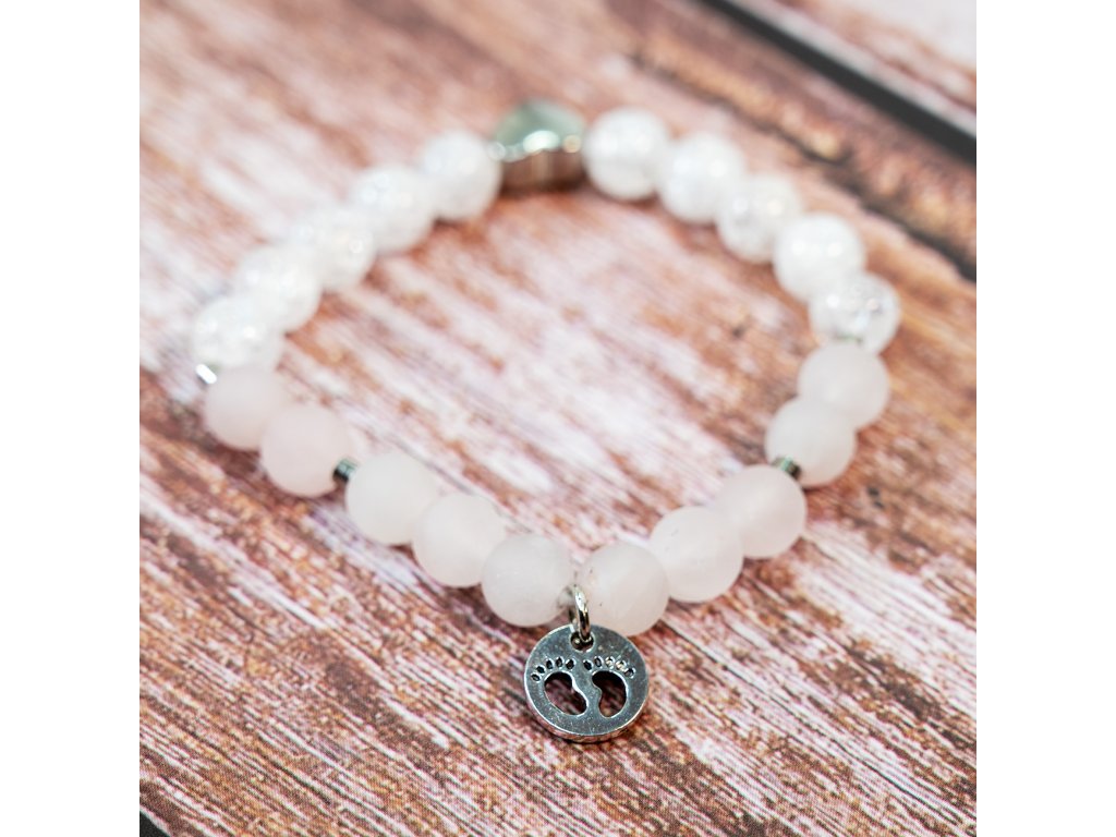 Každá maminka si zaslouží památku na porod. Tímto krásným náramkem ji nejen potěšíte, ale také bude mít krásnou památku na tuto nezapomenutelnou událost. Náramek je složený z růženínu a křišťálu, zdobený ocelovým srdíčkem a přívěškem s nožičkami.