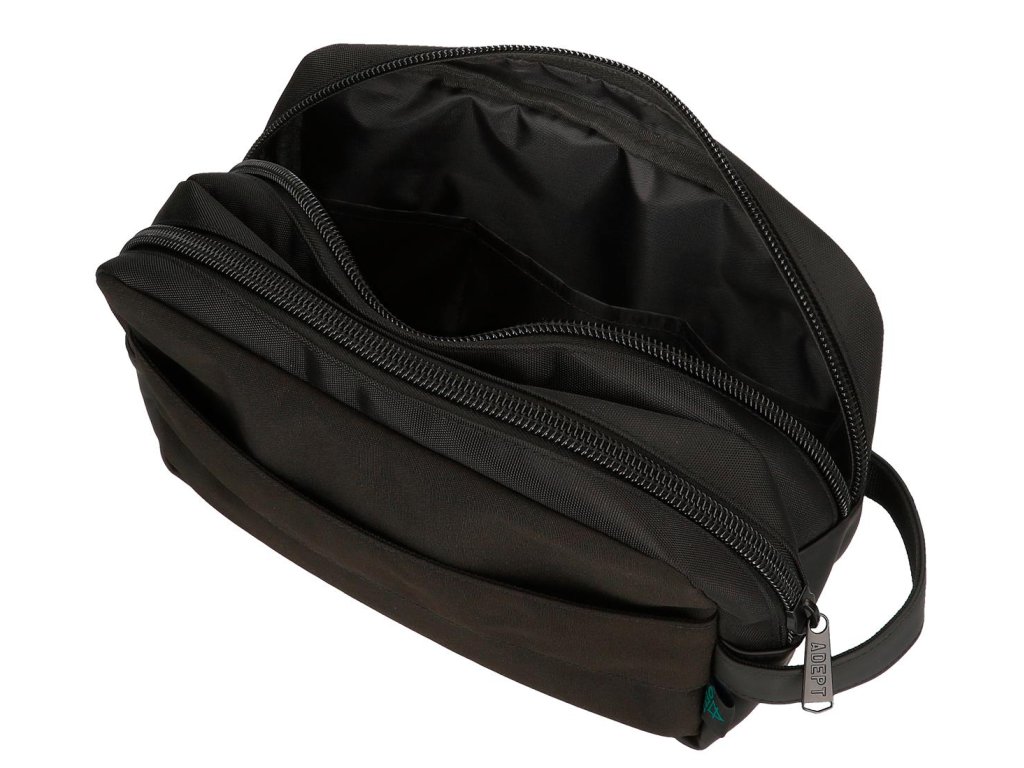 Pánská kosmetická taška Adept Dmas v černé barvě je skvělým pomocníkem při každodenní péči o sebe sama. Zajistí bezpečné a přehledné uložení hygienických potřeb doma i na cestách. 🪒🧴