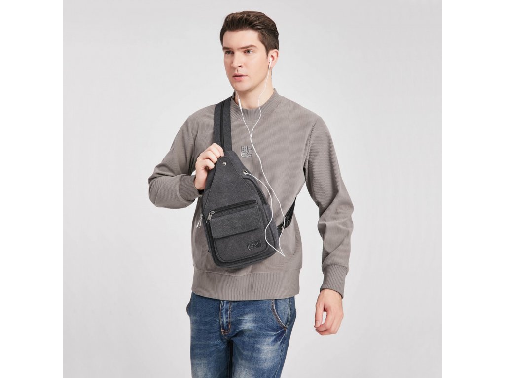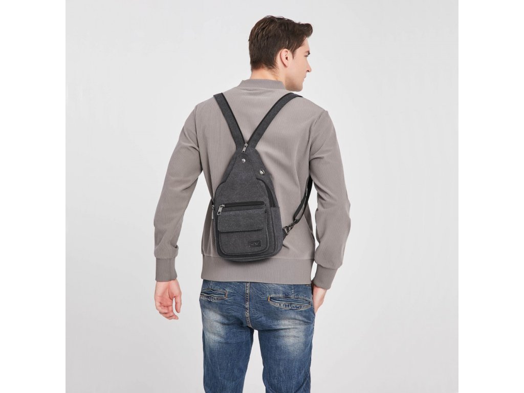 Úzký pánský crossbody batoh casual canvas Kono - černý