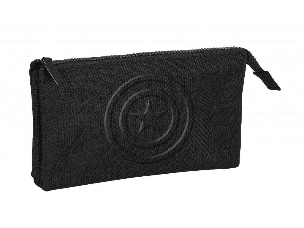 Praktický a kompaktní tříkomorový školní penál v designu Marvel Captain America v černém provedení.