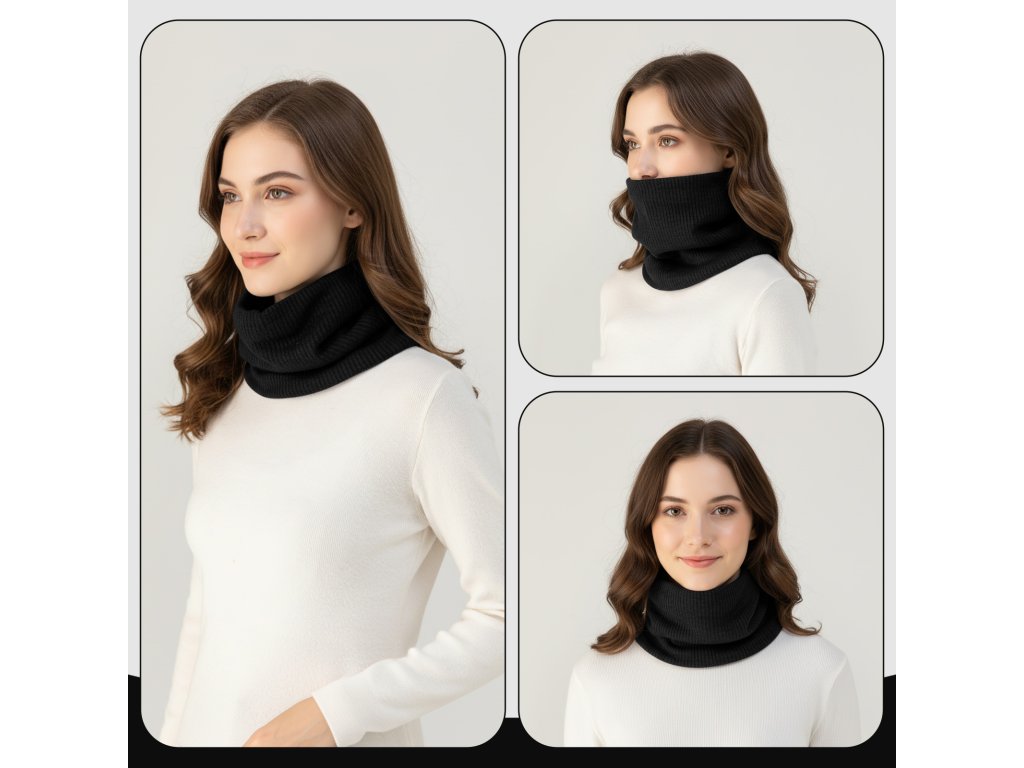Klasická černá barva snadno ladí s jakýmkoliv kabátem, bundou či svetrem. Tento nákrčník se stane vaším oblíbeným doplňkem pro zimní měsíce – stačí jej přetáhnout přes hlavu a vyrazit ven v teple a stylu.