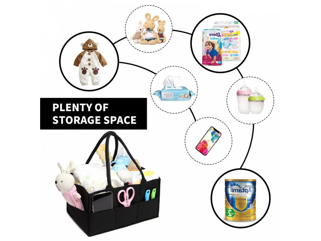 Velká kapacita usnadňuje uspořádání dětských plenek, oblečení, hraček, utěrek, přebalovacích podložek, bryndáků, hraček a mnoho dalšího.