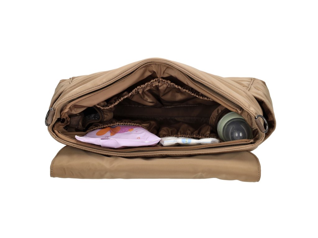 - 👶 Přebalovací podložka: Praktická skládací podložka je součástí tašky, takže přebalíte vaše miminko pohodlně kdekoliv.