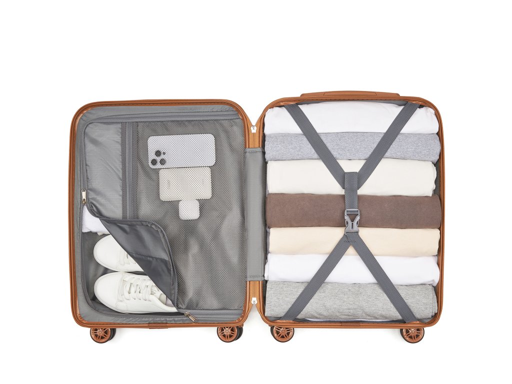 - Organizovaný vnitřní prostor: Hlavní přihrádka obsahuje nastavitelné nylonové popruhy a kapsy na zip, včetně síťované kapsy na menší předměty, což usnadňuje organizaci a zajištění obsahu kufru.