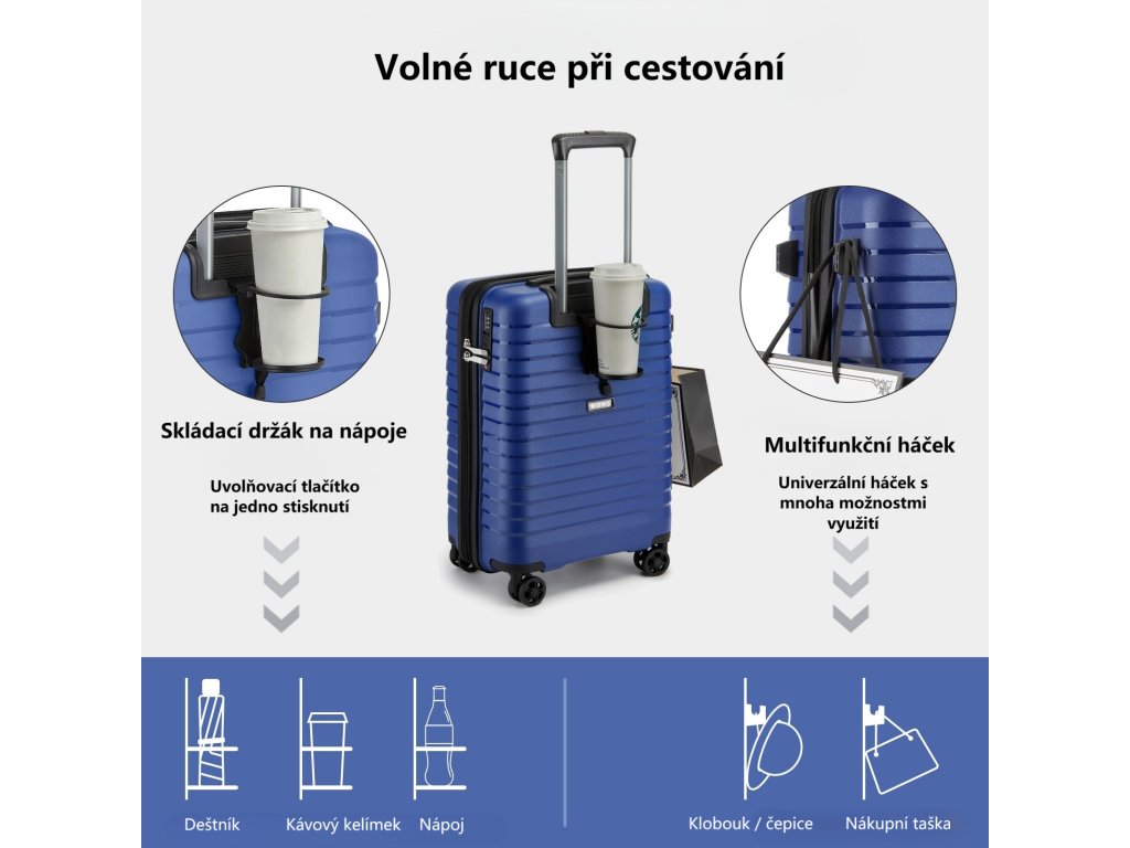 - Elegantní povrch s vertikálními pruhy zvyšuje odolnost proti poškrábání a dodává kufru moderní vzhled
