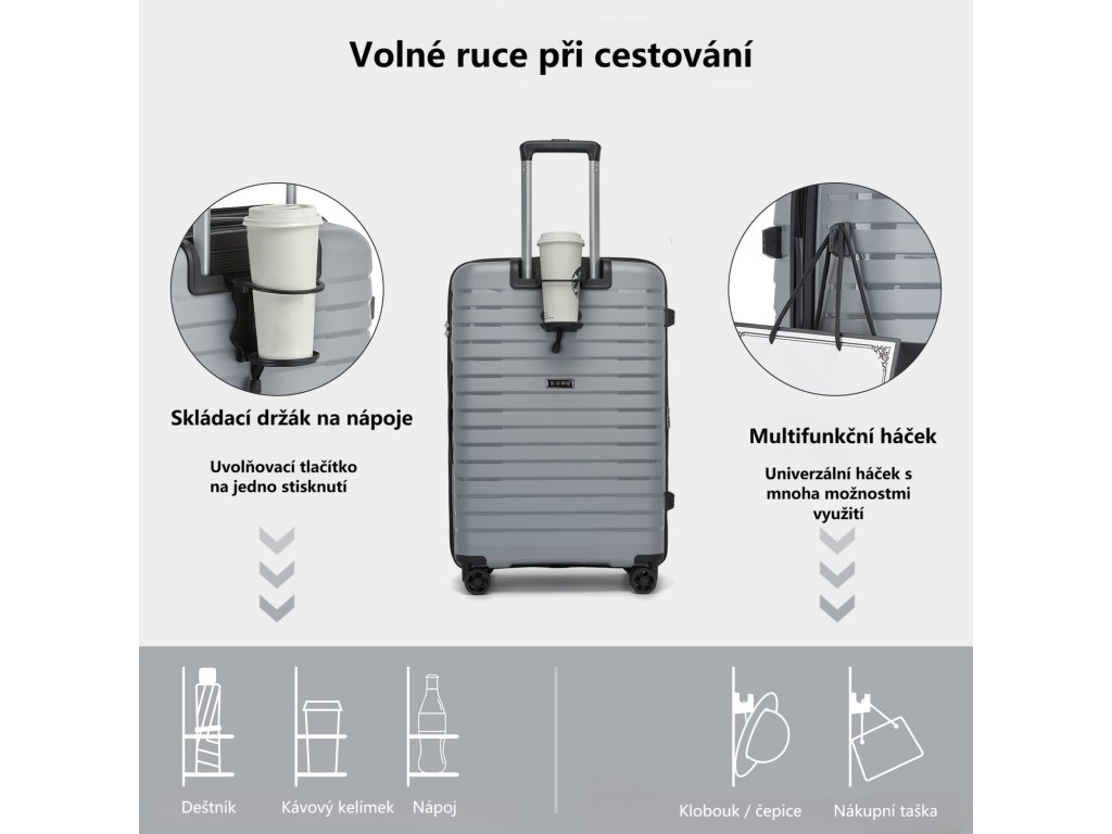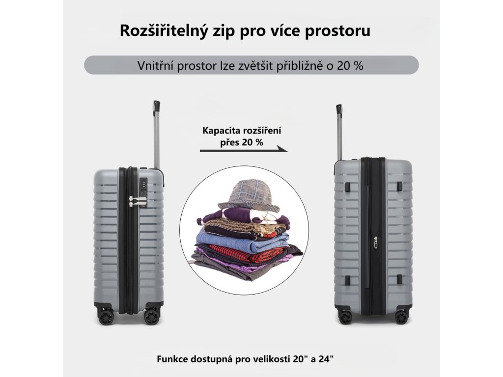 - Elegantní povrch s vertikálními pruhy zvyšuje odolnost proti poškrábání a dodává kufru moderní vzhled