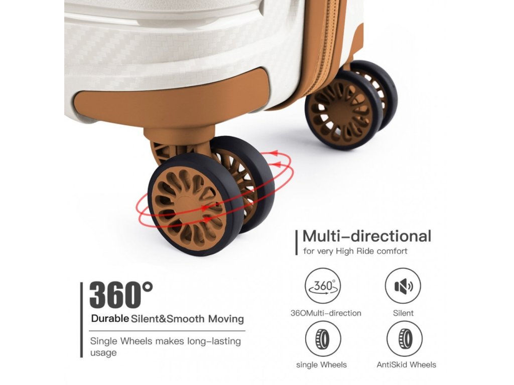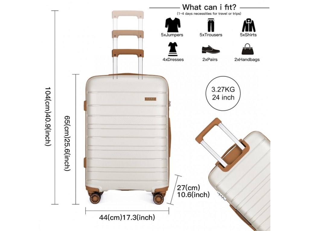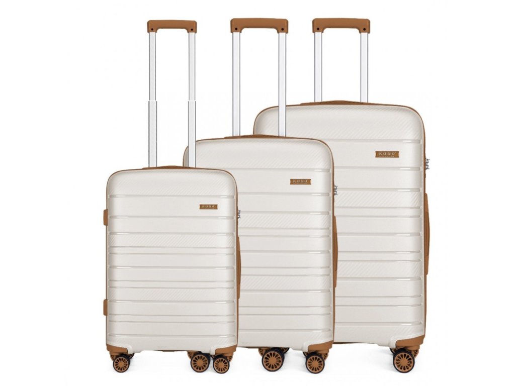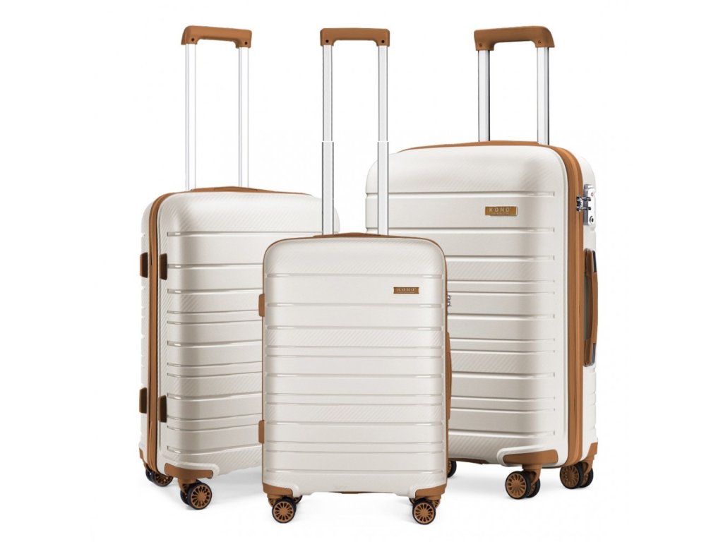 Sada 3 cestovních kufrů Kono Elegant - béžovo-hnědá - PP - 39 L / 70 L / 103 L