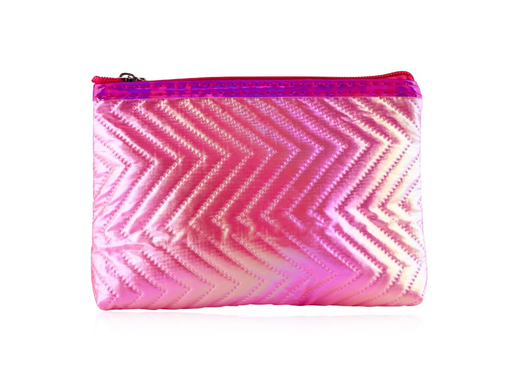 - Vnější materiál: PVC (průhledná taštička) + PU/polyester (metalické taštičky) – odolné, lehké a snadno čistitelné.
