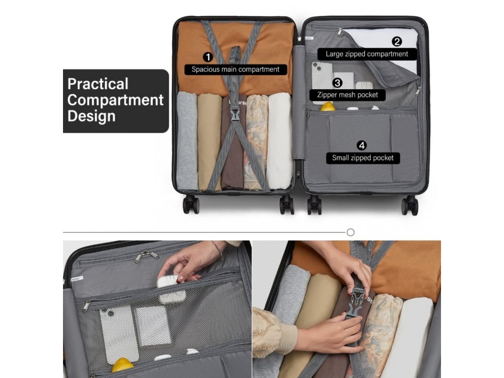 - 20" kabinový kufr: Navíc s přední zipovou kapsou, dvěma síťovanými kapsami a popruhem na notebook a tablet.