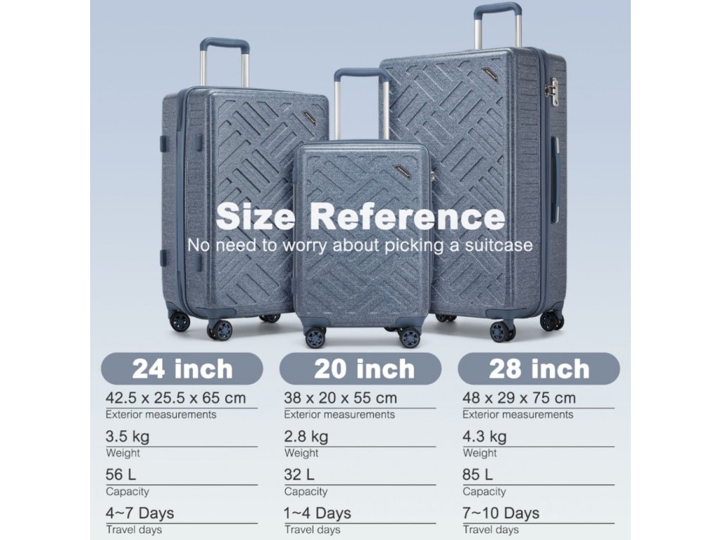 20” kufr splňuje rozměrové požadavky většiny leteckých společností, včetně British Airways, EasyJet a Jet2.com. Před cestou doporučujeme ověřit aktuální limity aerolinky. 🌍✨