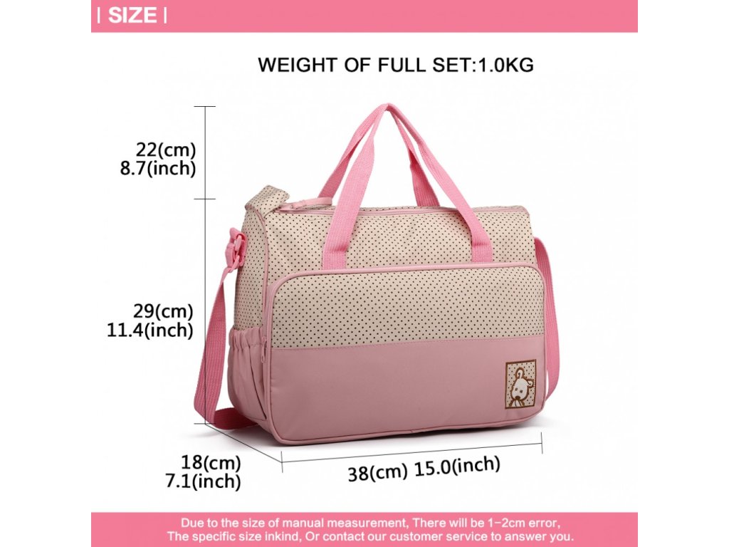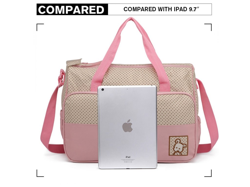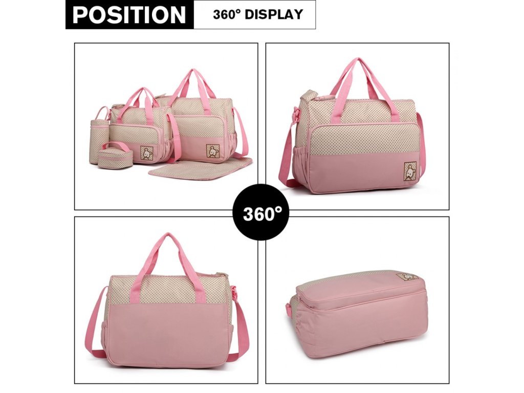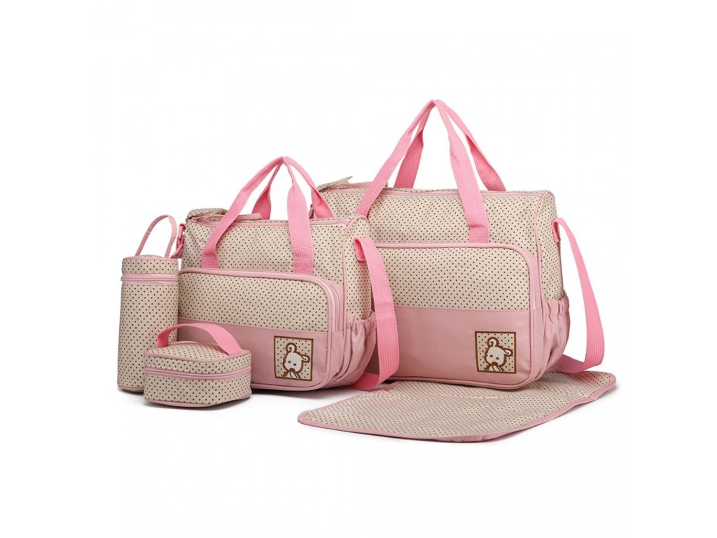 Stylová a praktická mateřská přebalovací taška. Taška se skládá z 5 ti částí a je vyrobena z vysoce kvalitního polyesteru. Obsahuje jednu velkou tašku, jednu střední tašku, malá taštička třeba na oběd, jeden izolační vak na pití a jednu přebalovací podložku.