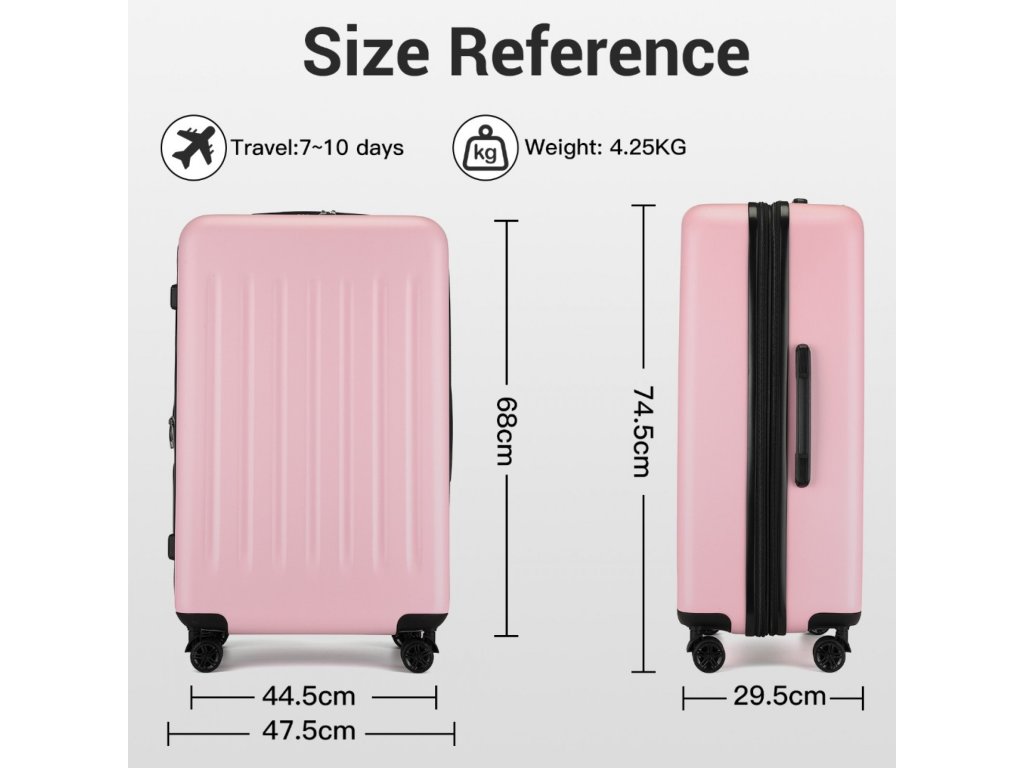 - 🧳 Odolná a lehká konstrukce: Kombinace kvalitního ABS a polykarbonátu zajišťuje pevnost, pružnost a dlouhou životnost.