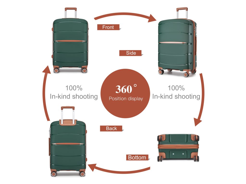 Sada tří cestovních PP kufrů Kono - 38/61/91 L - zelená