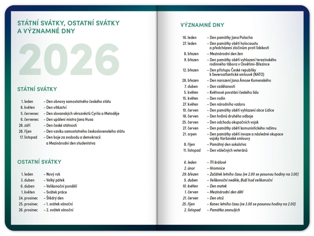 - 📝 Místo pro vlastní poznámky: Prostor pro zapisování myšlenek, projektů nebo důležitých informací podporuje systematičnost a kreativitu.