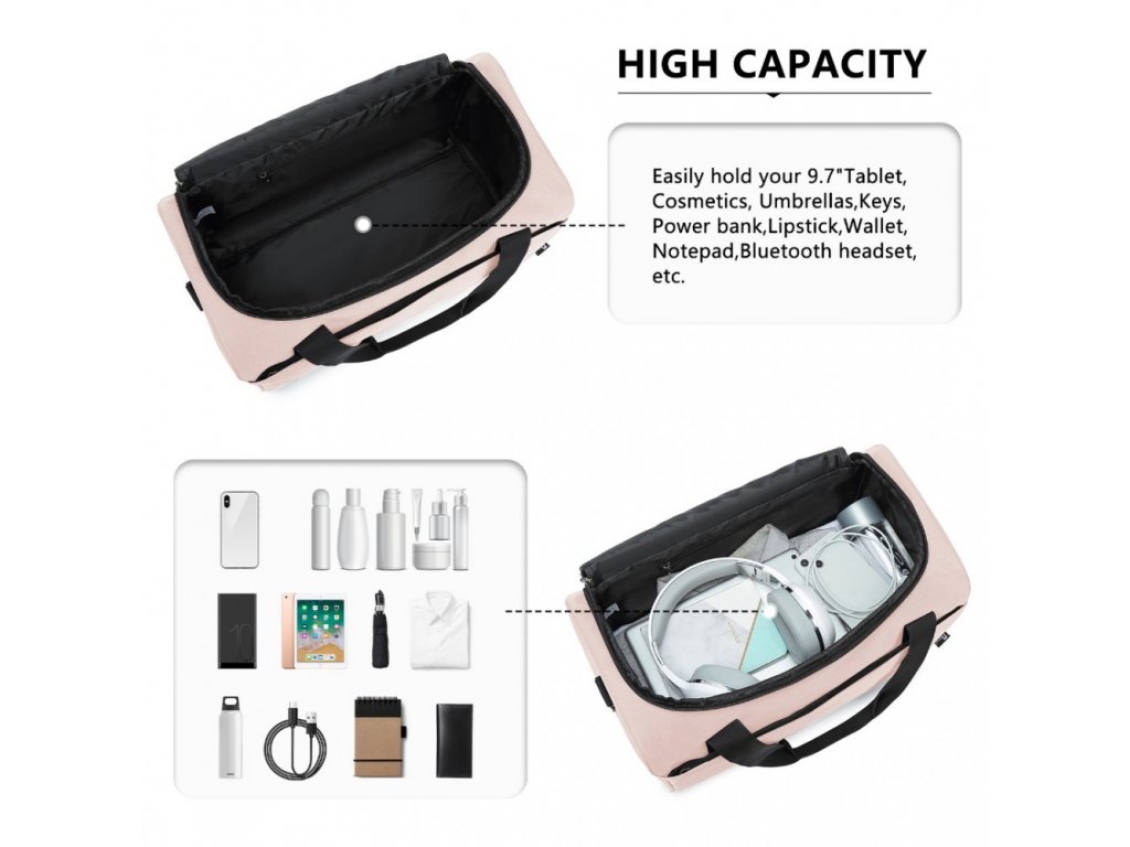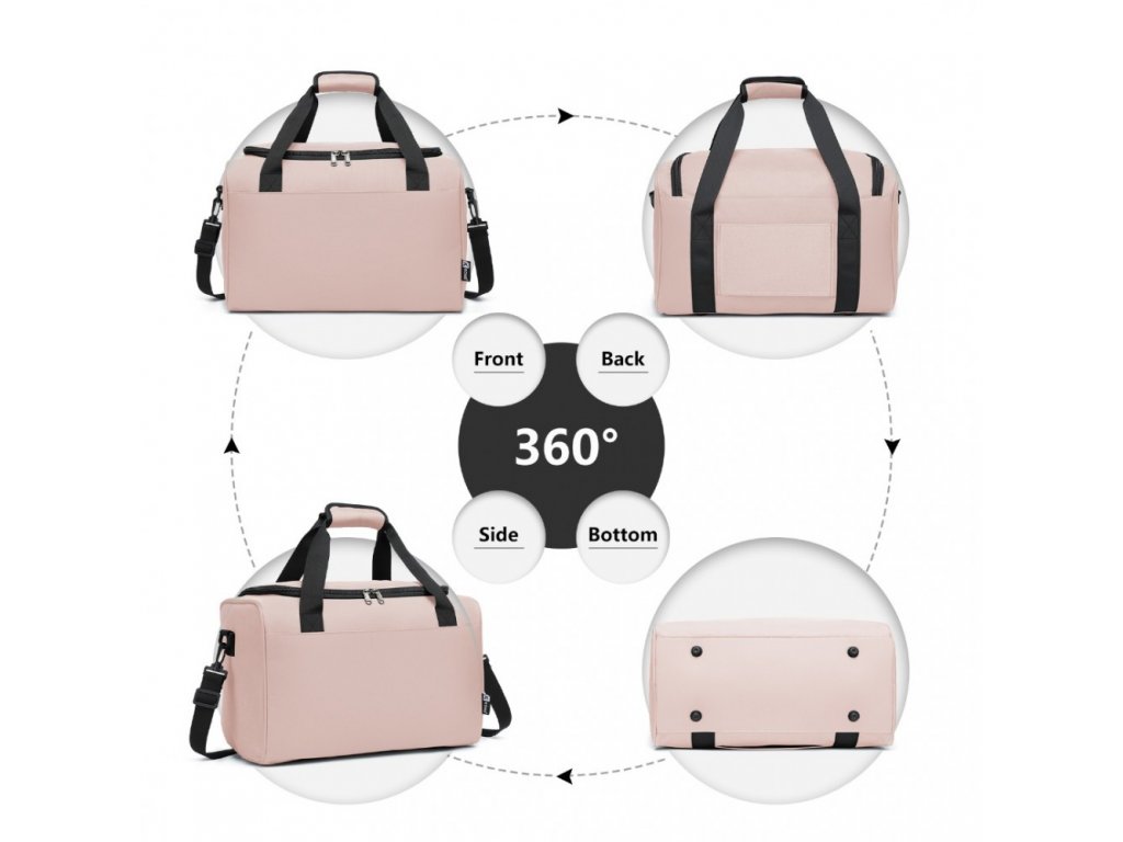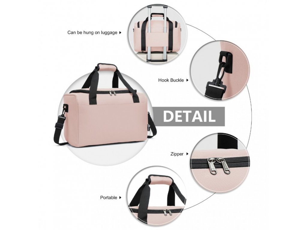Klasická cestovní či sportovní taška, vhodná jako příruční taška na cestování, či jako taška na sportovní aktivity. Perfektně sedne na každé madlo kufru a tak je cestování hračkou. V růžovém provedení.