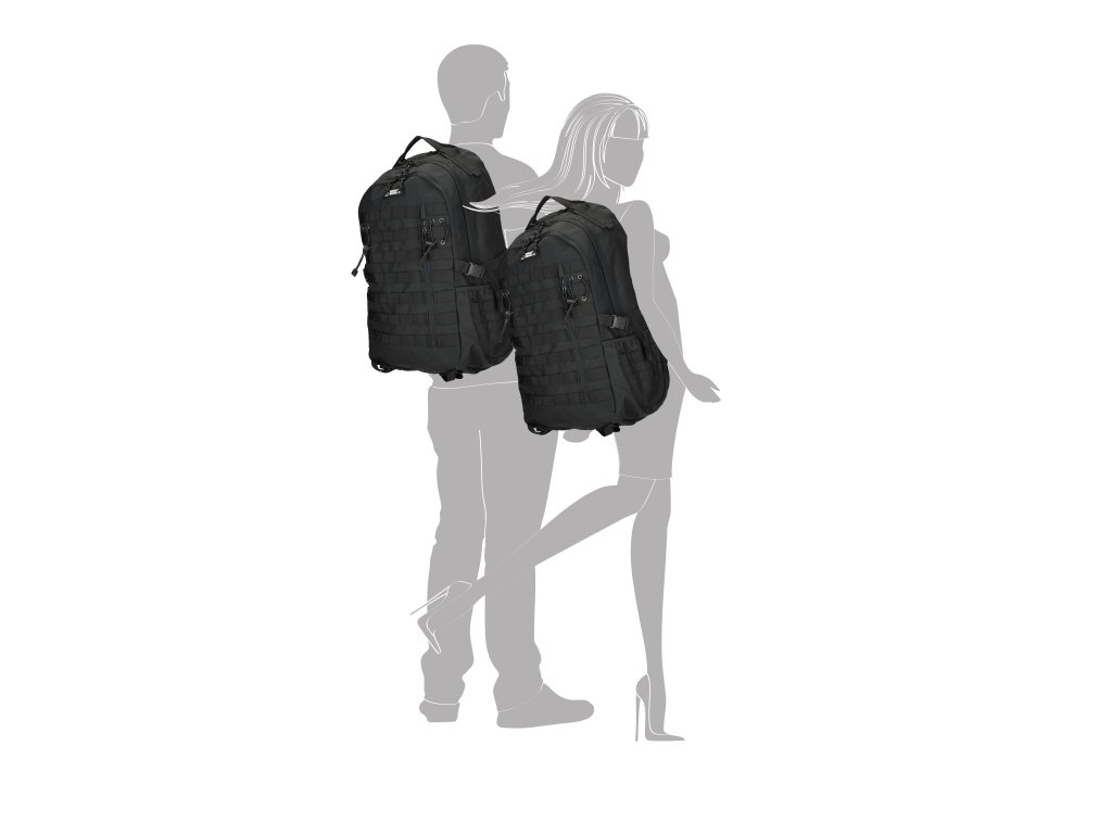 - Molle systém: Přední část batohu je vybavena modulárním systémem, který umožňuje připevnění dalšího vybavení, jako jsou tašky nebo pouzdra.