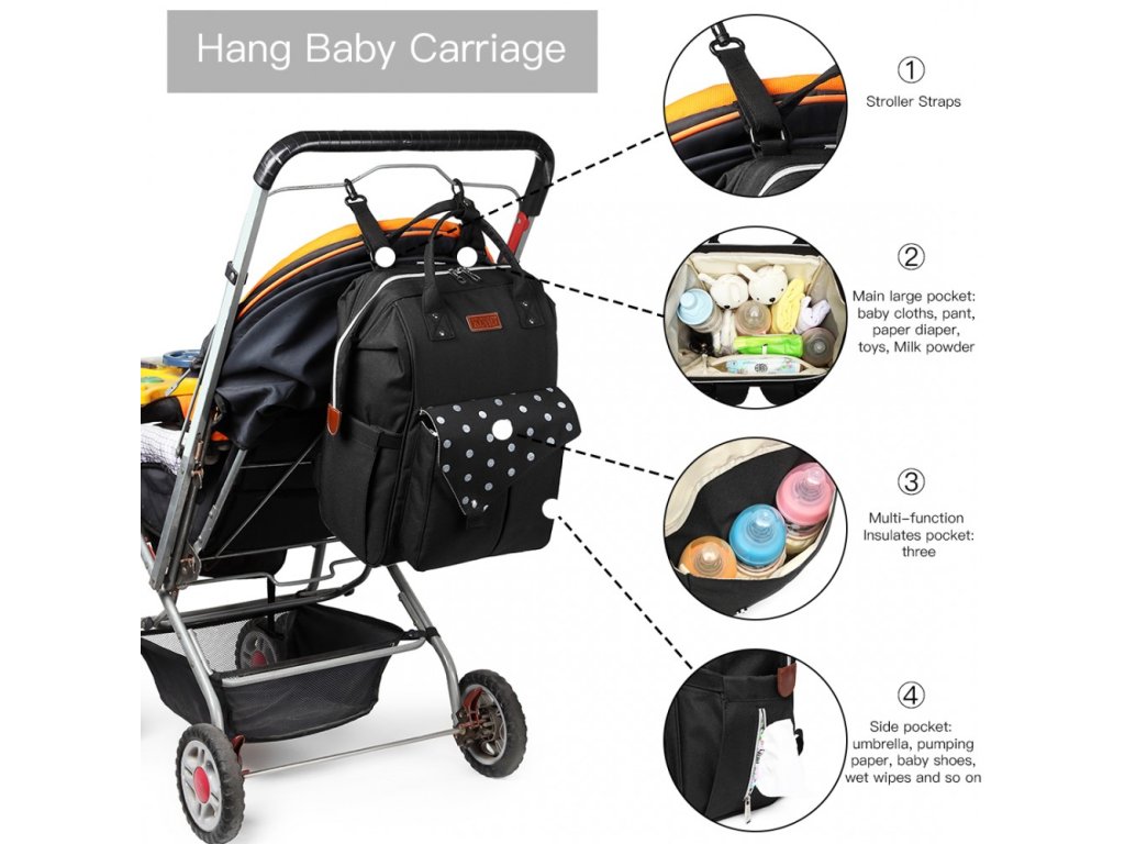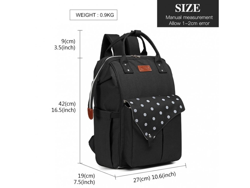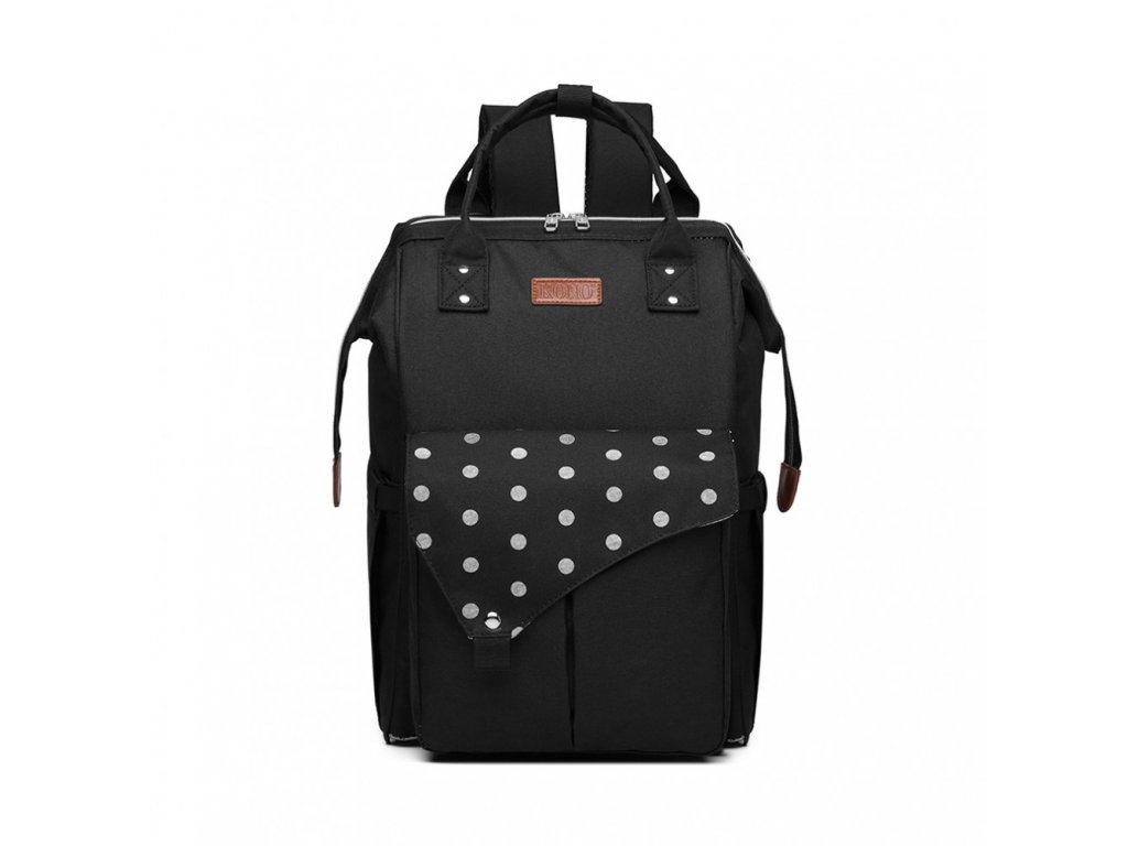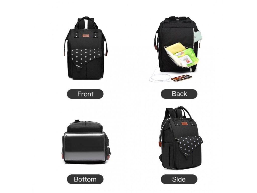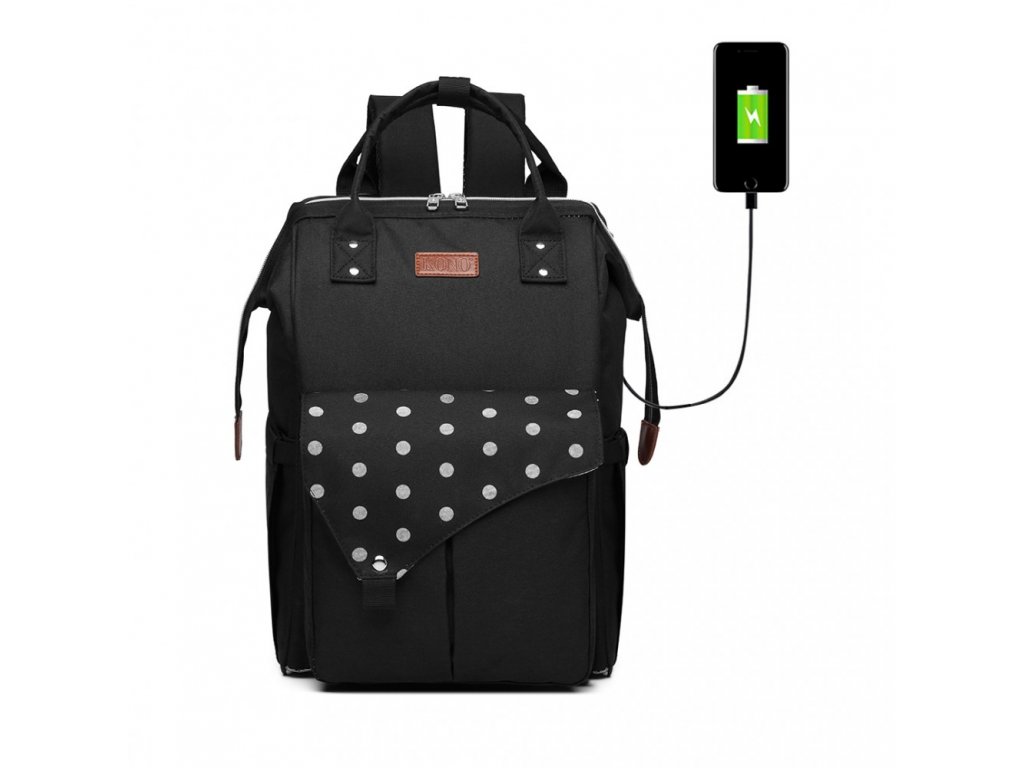 Přebalovací batoh na kočárek Polka s USB portem - černý s puntíky