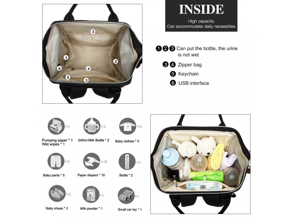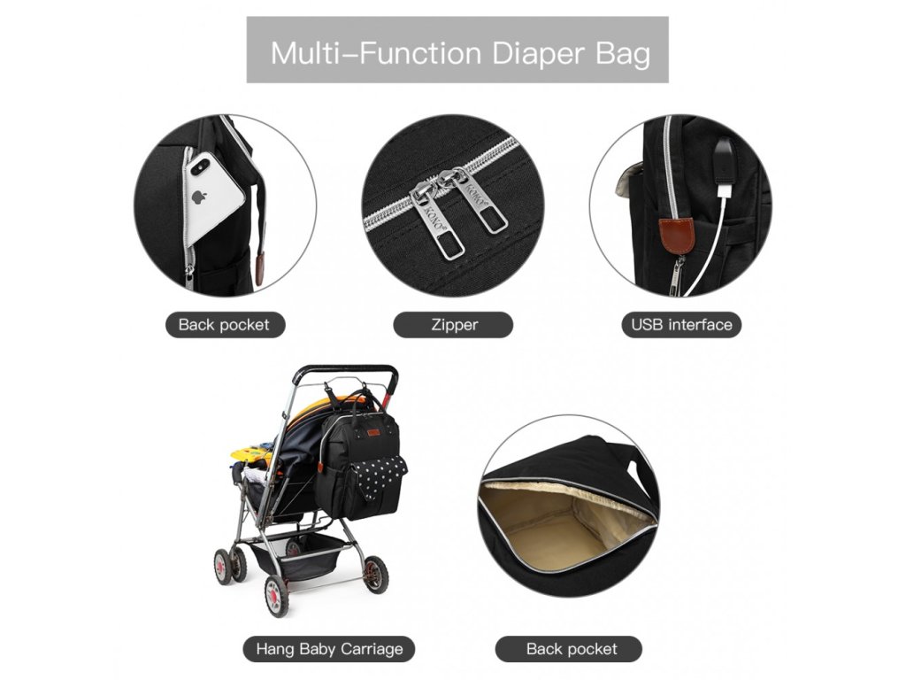 Skvělý batoh bez kterého se dnes už neobejde žádná maminka. Velmi oblíbený mezi maminkami a oblíbil si je i nejeden tatínek. Batoh je velmi praktický s množstvím přihrádek, přesně navržených pro potřeby vás a vašich ratolestí. Navíc s USB portem pro nabíjení mobilu přes powerbanku, kterou si můžete u nás k batohu přikoupit také. V černém provedení.
