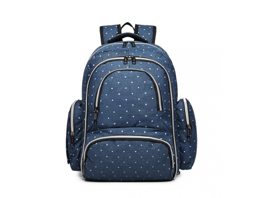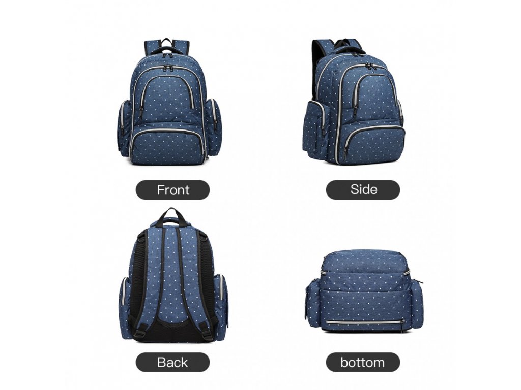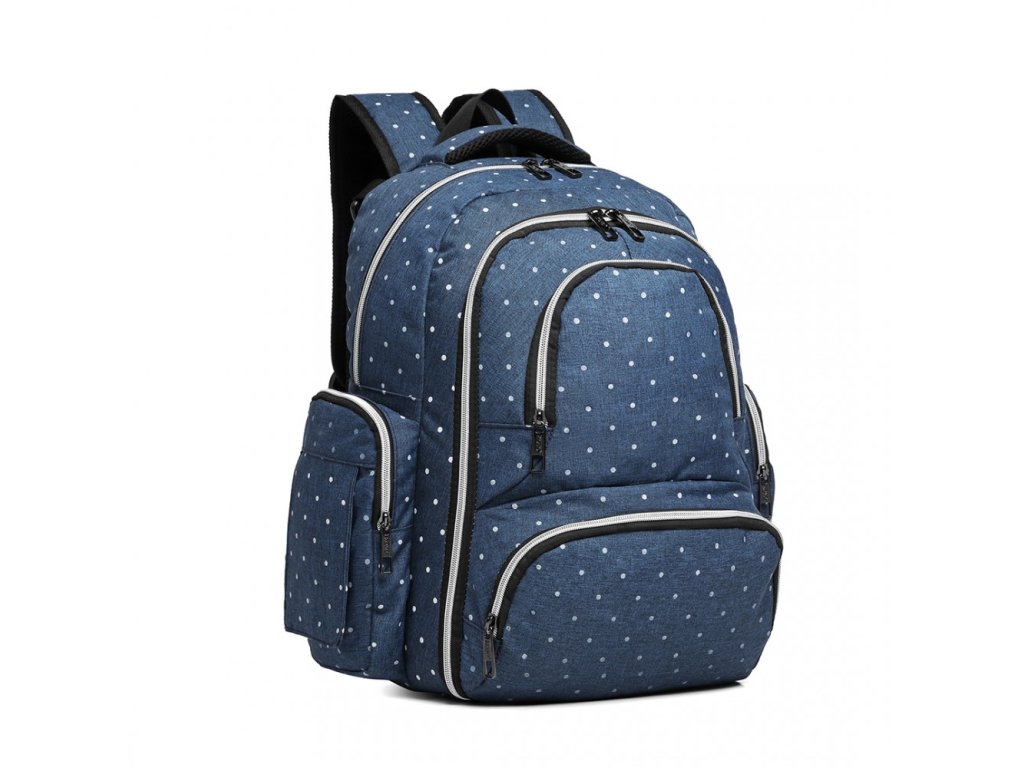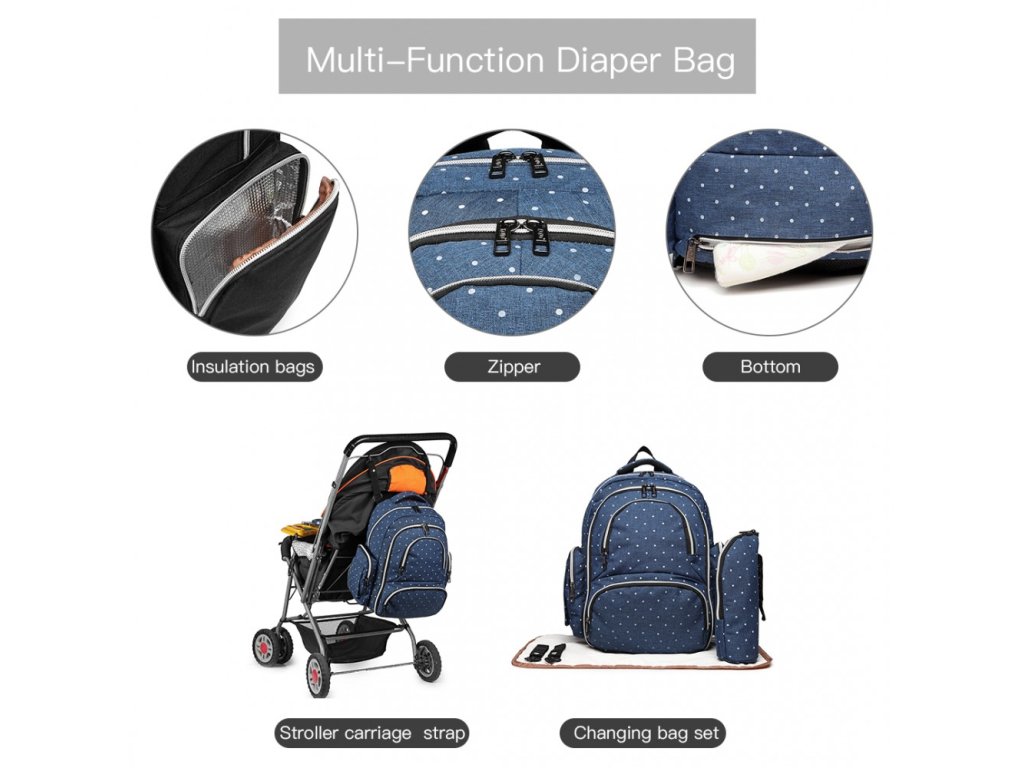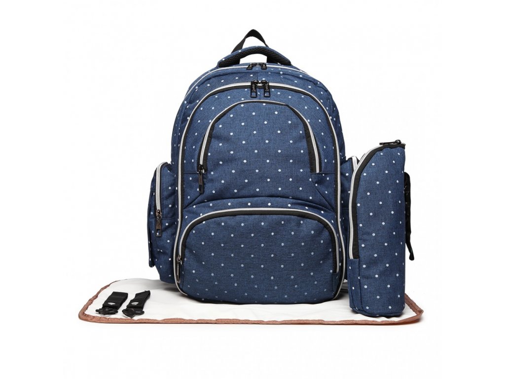 Přebalovací batoh s doplňky na kočárek - modrý s puntíky