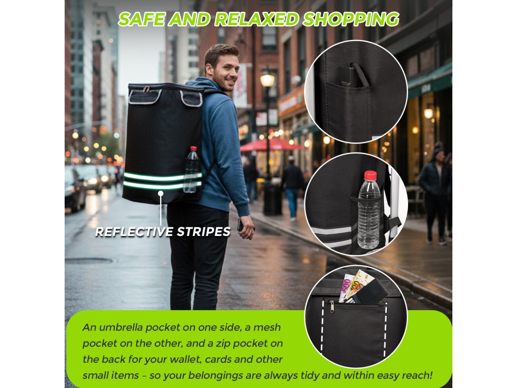 - ❄ Termoizolační vnitřek: Hliníková izolační podšívka pomáhá udržet teplotu potravin cestou z obchodu domů.