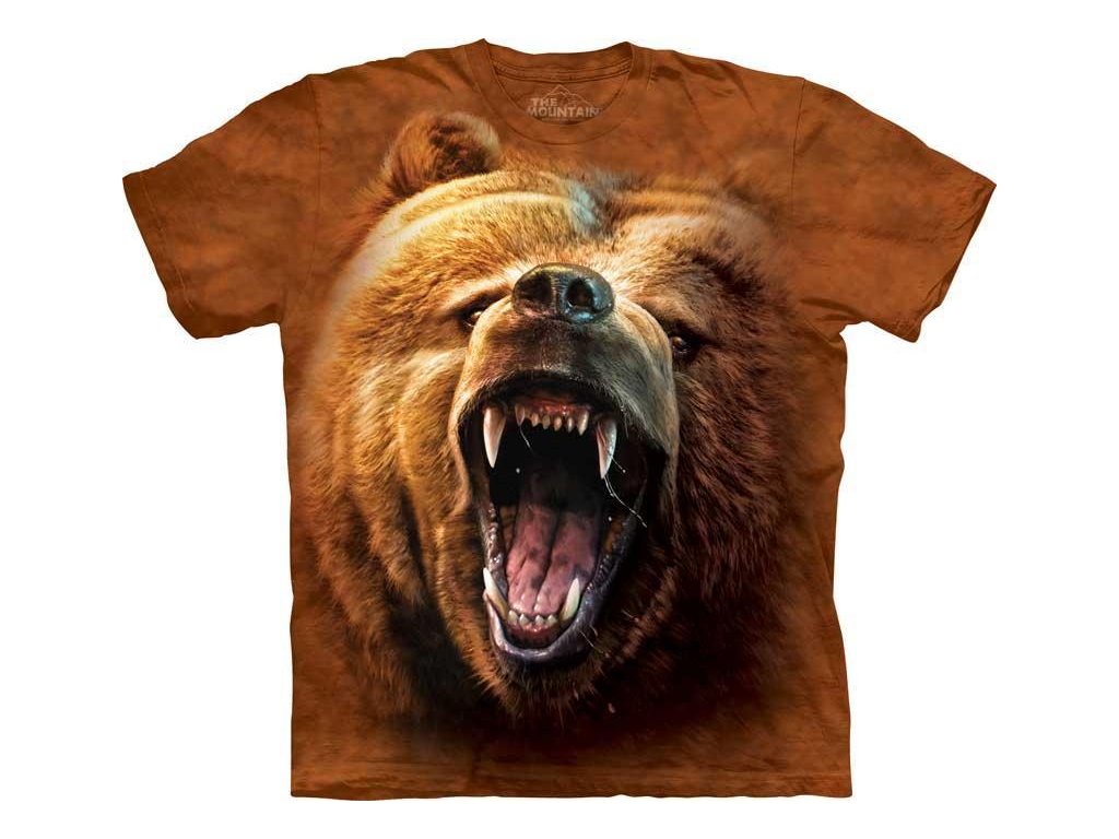 Bavlněné batikované tričko se speciálním patentovaným potiskem Tvář Řvoucího Medvěda. Střední gramáž, rovný volný střih, 100% bavlna. Kvalitní americká značka ekologických triček The Mountain.