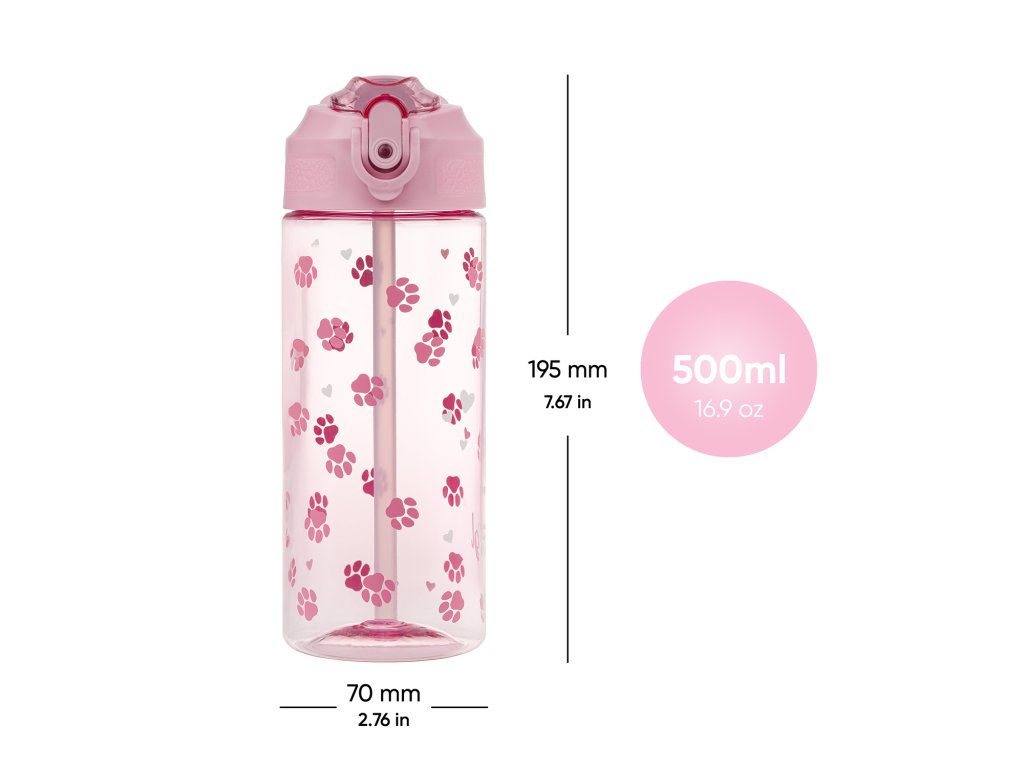 Tritanová láhev na pití s brčkem BAAGL Tlapky, 500 ml