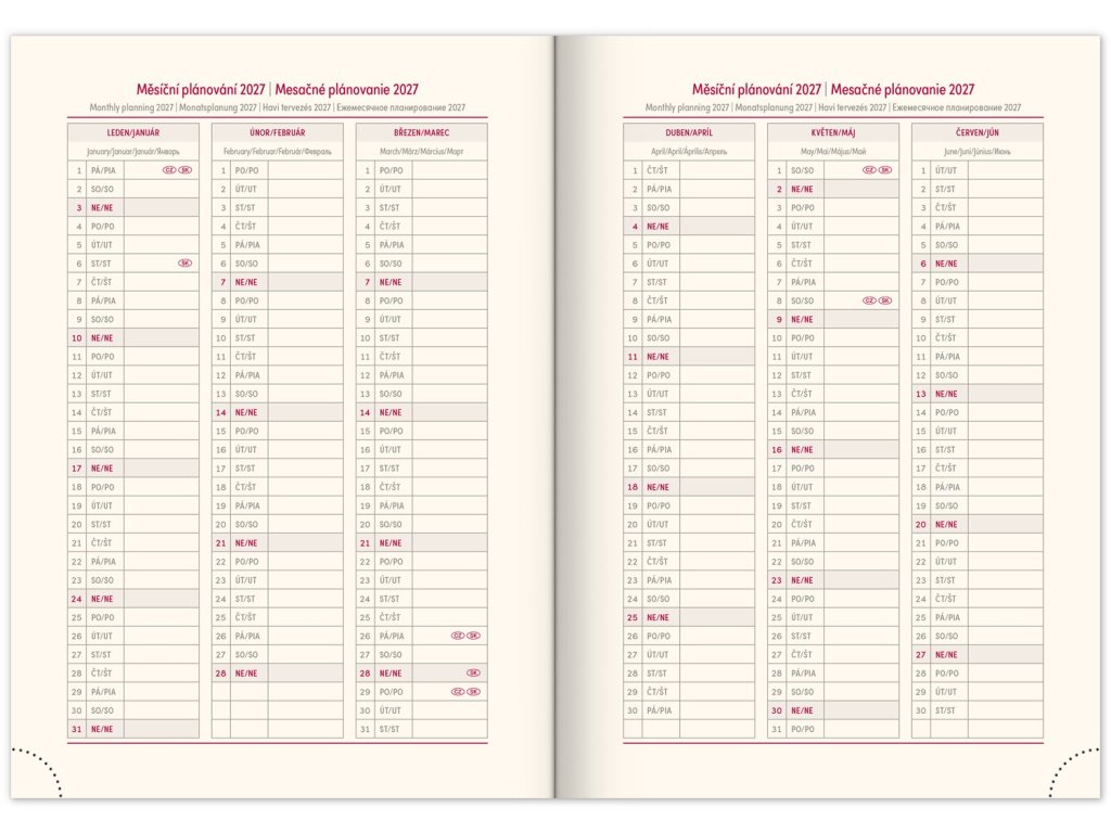 - Měsíční plánovací kalendář 2027.