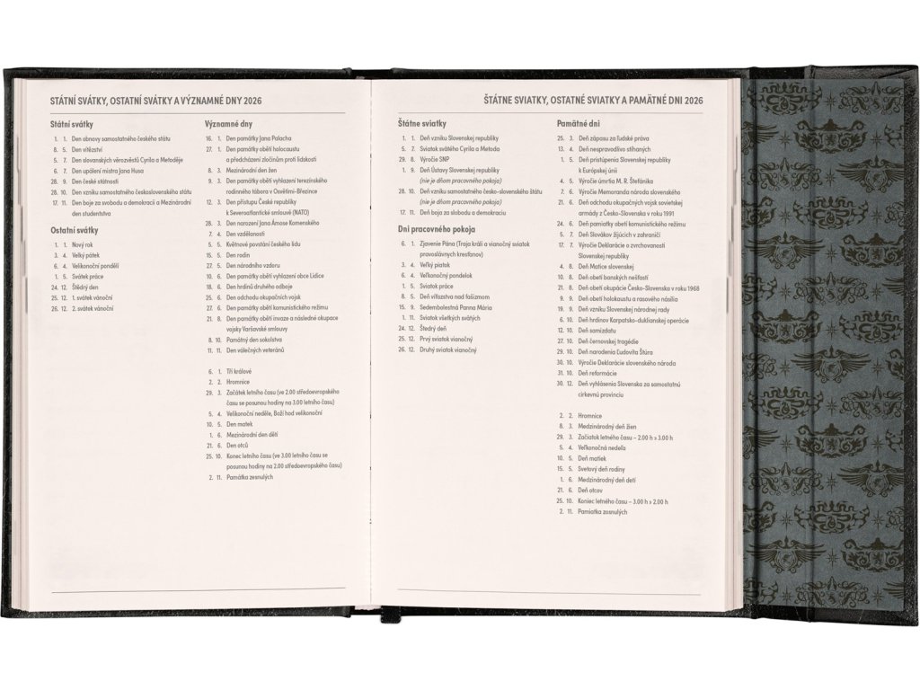 - 🌍 Dvojjazyčné kalendárium: Kompletní české a slovenské kalendárium, včetně přehledu svátků a jmenin obou zemí.