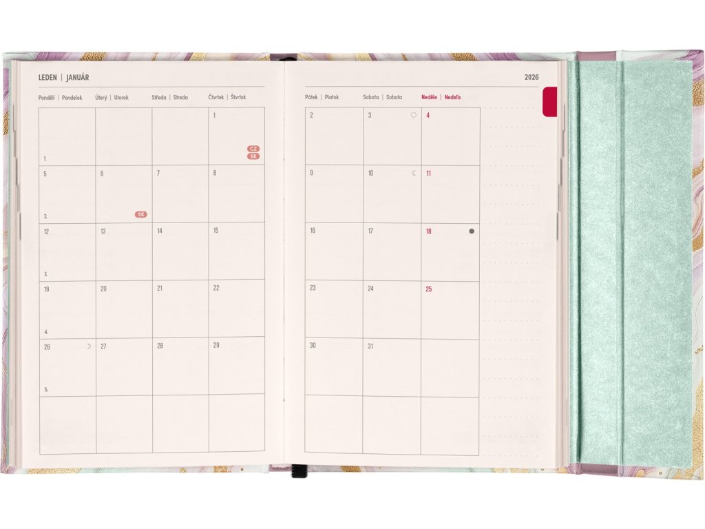 - Spojuje krásu mramorového designu s praktičností každodenního plánování.